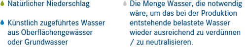 Wasserverbrauch (Liter) zur Erzeugung von 100g (Details durch Klicken auf Symbole):